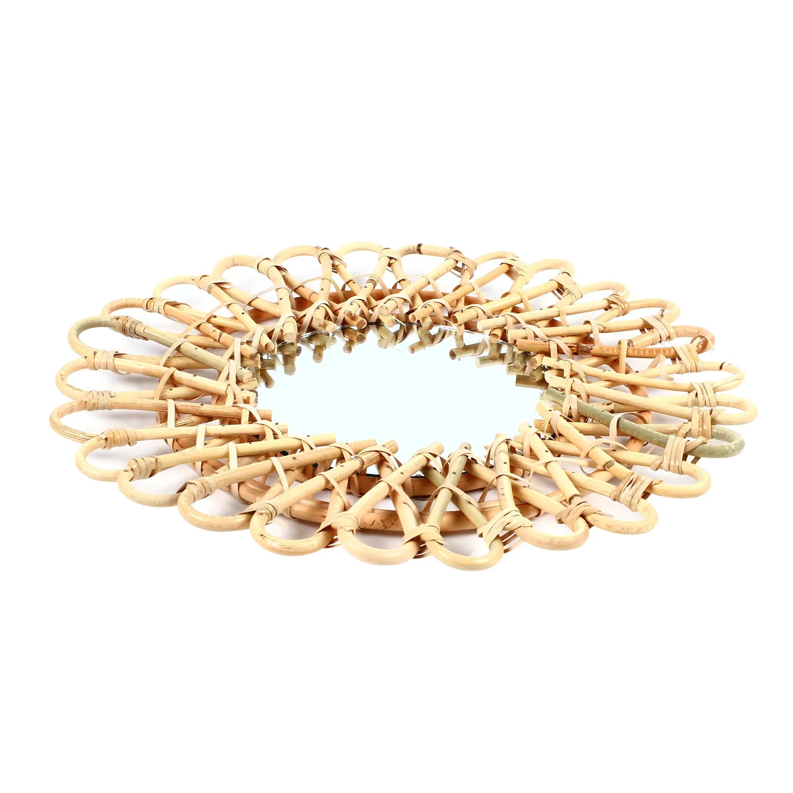 Fabriqué à la main à partir de rotin naturel, ce miroir rond incarne une élégance simple et authentique. Son tressage raffiné, sa teinte bois clair et ses courbes organiques créent une atmosphère chaleureuse et sereine.